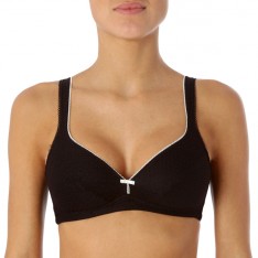 Este sujetador es de algodón elástico, de color negro y tiene un leve efecto brillante. Lo novedoso es que gracias a los ganchos que tiene en su copa te permite de manera más cómoda darle el pecho a tu bebé. Y además, puedes regular la altura en la que quieres fijar la copa superior, teniendo una gama de tres cierres.