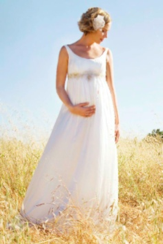 Es muy dificil encontrar vestidos de boda para maternidad, las grandes casas de moda que se dedican a la confección de esta clase de vestidos, en general no realizan opciones especiales para las futuras mamás, y debemos conformarnos con ver en las pasarelas cuales son los vestido que más se adecuan a nuestra situación,  el embarazo, y lograr imaginarnos como serian las reformas que se le podrian hacer.